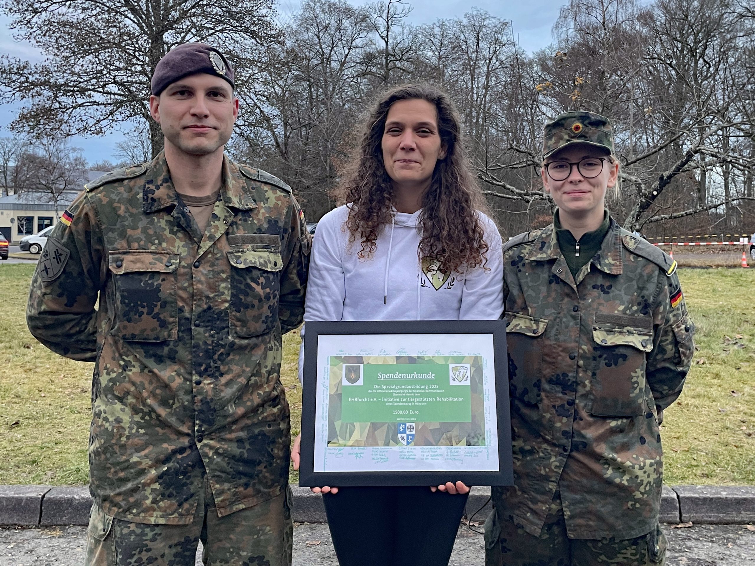In der Zeit vom 20. November bis zum 03. Dezember sammelten die jungen Soldatinnen und Soldaten innerhalb ihrer Ausbildungseinheit Spenden für den Verein EHRfurcht e.V. Dabei kam eine Spendensumme in Höhe von 1.500€ zustande, die gestern an uns übergeben wurde.